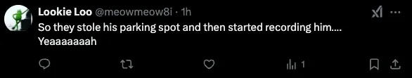 “所以她们抢了他的停车位,然后还开始录他的视频……嗯,真是绝了。”