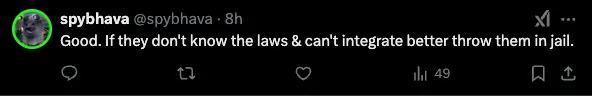 “很好。如果他们不懂法律,不能融入社会,最好把他们关进监狱。”