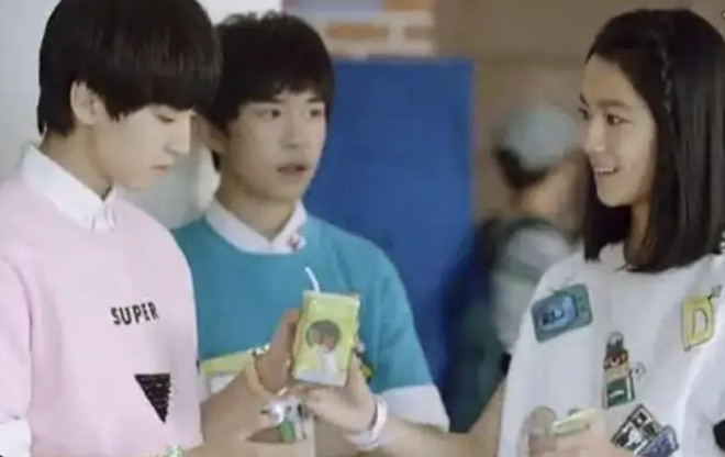 在她15岁,也就是2016年,TFboys正当红的时候,跟三位合拍蒙牛TVC广告。