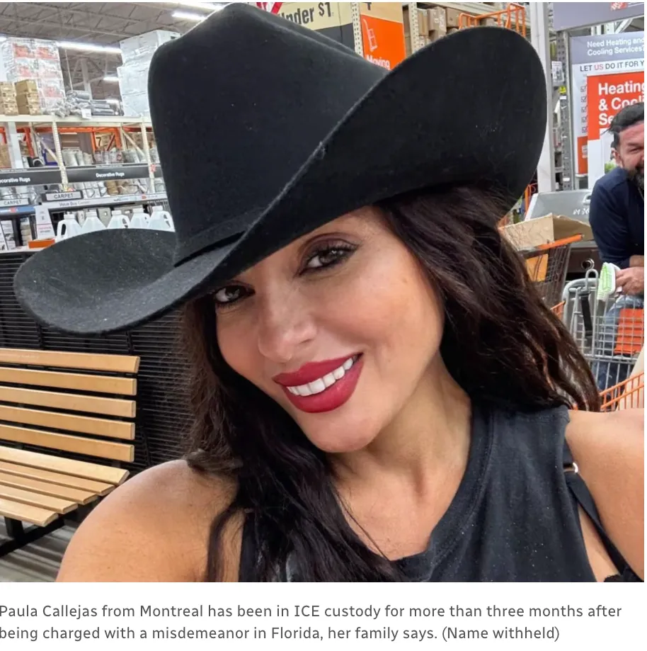 保拉·卡列哈斯(Paula Callejas,上图)是蒙特利尔居民,在办理美国工作签证时被捕,随后被转移到ICE拘留中心。