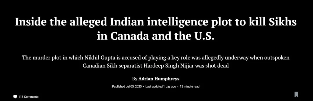 2023年6月18日,加拿大卑诗省萨里市震惊传来消息:锡克分离主义运动领导人尼贾尔在寺庙外遭枪杀。