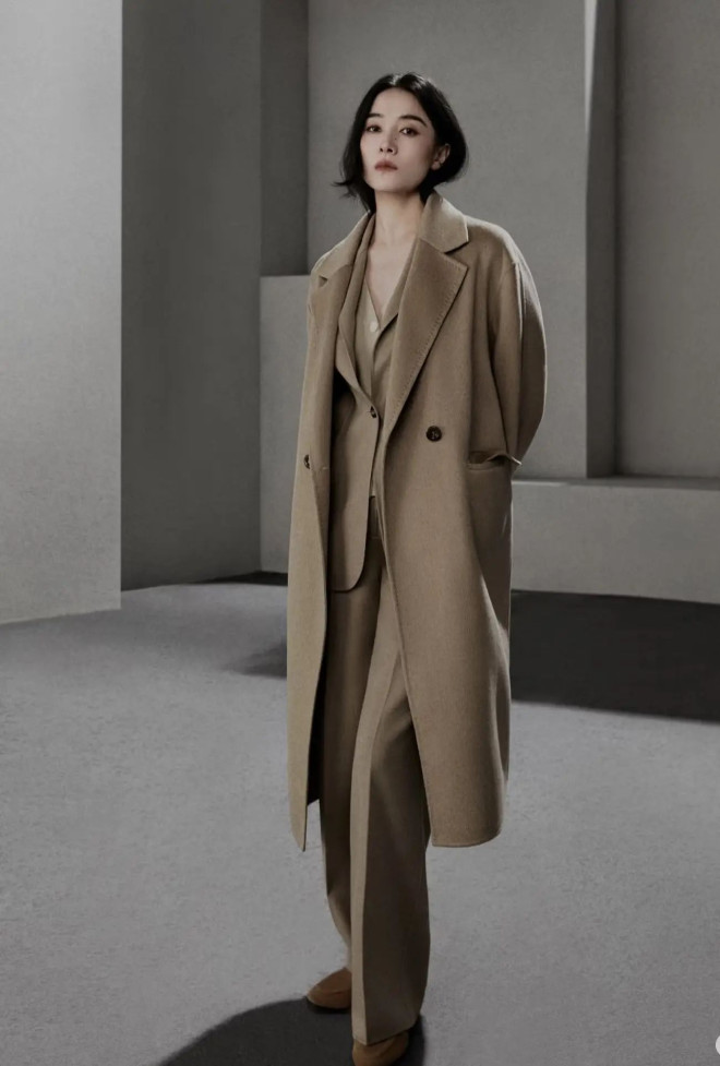 宋佳同色系驼大衣+西装套装,是“all beige”的高阶玩法:顺色叠穿显高级,宽松廓形衬出松弛感,麂皮鞋收尾,精准踩中秋冬“极简显贵”趋势。