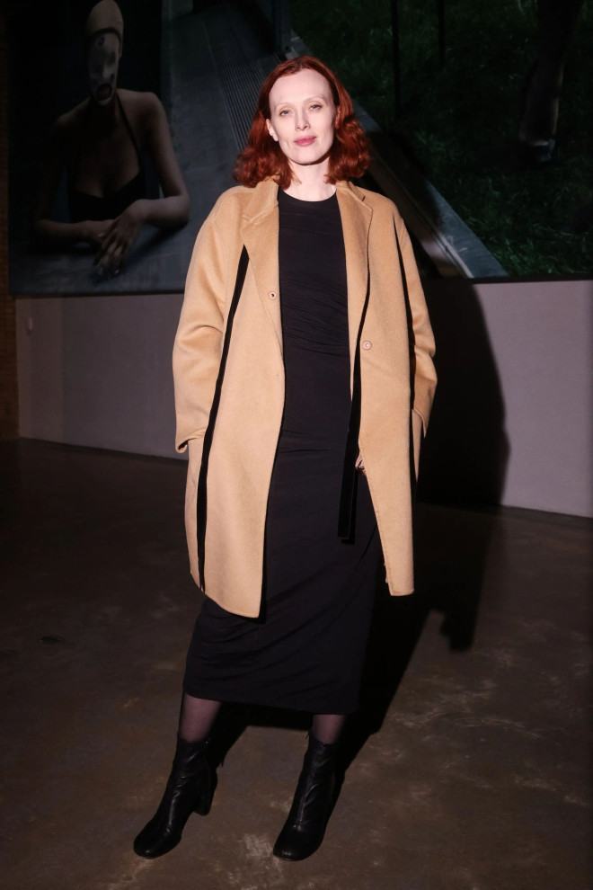 驼色大衣+黑色褶皱裙,用“硬挺×柔垂”的材质碰撞出文艺腔调,黑丝+短靴暗戳戳露性感,是画廊看展的绝佳穿搭,文艺感满满。