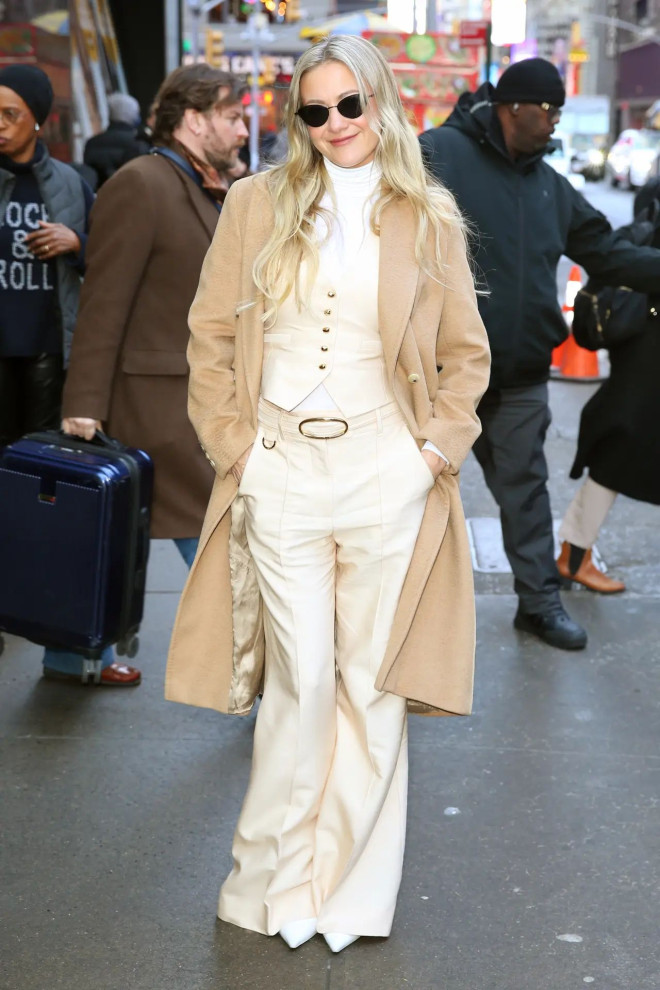 奶油色系叠穿+宽腰带,把驼色大衣穿出“富家千金感”,喇叭裤拉长比例,全白内搭提亮视觉,秋冬“显贵不张扬”的穿搭。