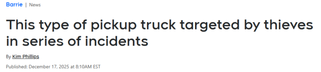 如果你有一辆皮卡车,尤其是丰田Tundra,警方提醒你要特别留意停车的位置和方式——因为最近接连发生了几起深夜可疑事件。