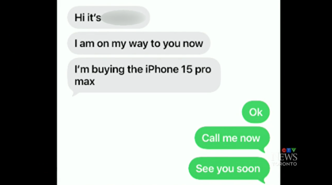 她在采访中说:“对方说会在4月5日过来取手机,并按广告上的价格带来900加元现金。”