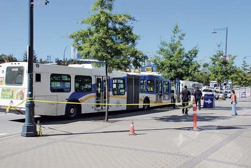 在周四下午大约2时30分,素里皇家骑警接报,一辆行走素里的巴士在途经100街(100th Ave.)夹乔治国王大道(King George Blvd.)时,两个男乘客首先发生口角,继而动武,期间其中一人更被对方所持利器刺伤。
