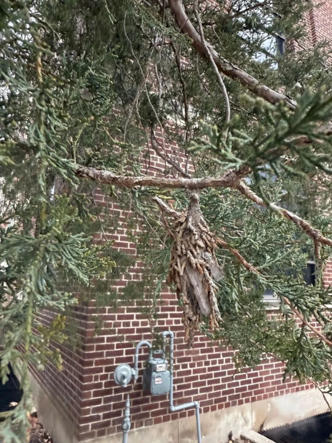 这些袋蛾茧虽然外形酷似松果,但每一个可能藏有高达 1,000 颗虫卵,足以让常绿植物遭到严重危害。这种具破坏性的害虫原产于北美(主要在美国东部),会侵害超过 120 种树木,包括雪松、铁杉、刺柏、松树、云杉和冷杉等。