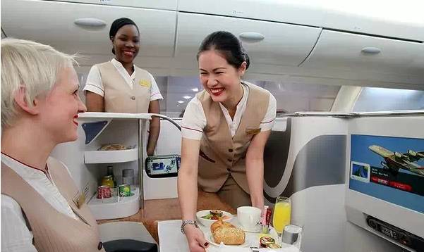 一,因为600人载客量的A380航班上往往只有一个中国空服员,剩下的都是外国空服员。所以外国人也常飞北京。我不能抨击阿联酋航空不重视中国航班,我也不能抨击中国政府对自己国民的保护没有做到日本那么细致。但结果是,不会英语的中国人不好意思要酒水,外国空服员服务的时候都拿果汁和水来应付。好多人 花了6800人民币(约34000台币)飞完8小时都不知道飞机上还有免费的红酒!