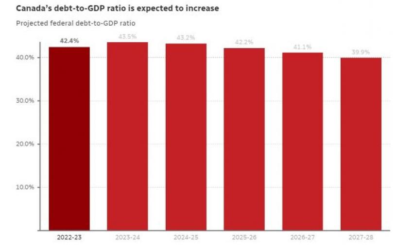 联邦债务目前约为 1.2 万亿元 —— 是杜鲁多及其团队掌权时的 6,123 亿元的两倍。政府不再预测何时会恢复平衡预算。