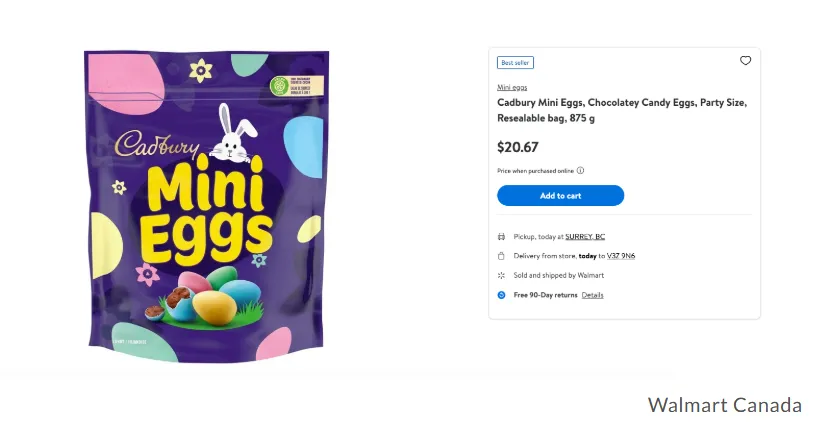 为了验证视频中的Cadbury Mini Eggs价格是否真的如此离谱,我们进行了一番调查。虽然并非所有超市都有875克装的Cadbury Mini Eggs,但我们在Walmart查到同款商品的售价为$20.67。