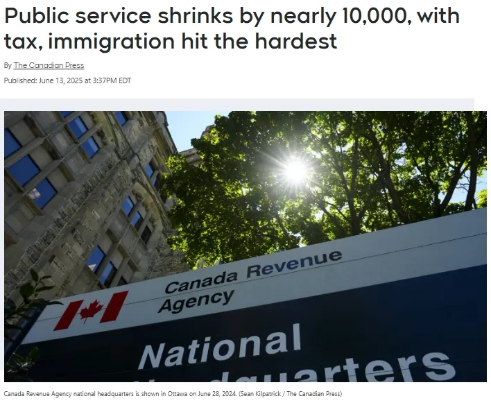 加拿大联邦公共服务部门裁员去年近1万人,其中以加拿大税务局(CRA)和加拿大移民、难民和公民事务部(IRCC)人数最多。
