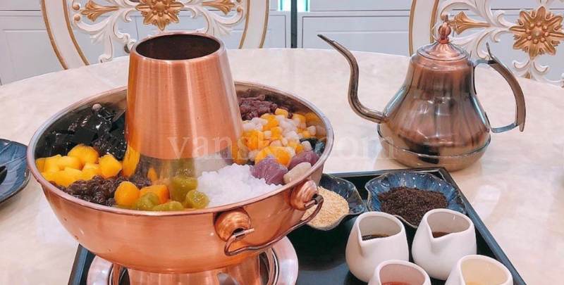 他们装芋圆的容器还是传统的火锅,珍珠、芋圆、西米等全部都围城一圈,倒下浓郁的鲜奶。