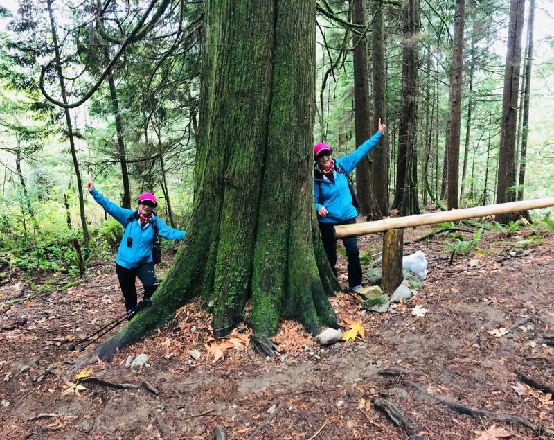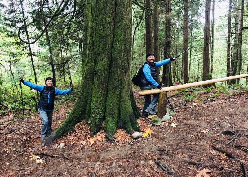 下山的路上有很多西部雪松和道格拉斯枞树,有几棵树特别粗大、苍老。我们将新方法告诉了队友,大家就兴致勃勃试起来,一开始照得并不好,慢慢就照好了。