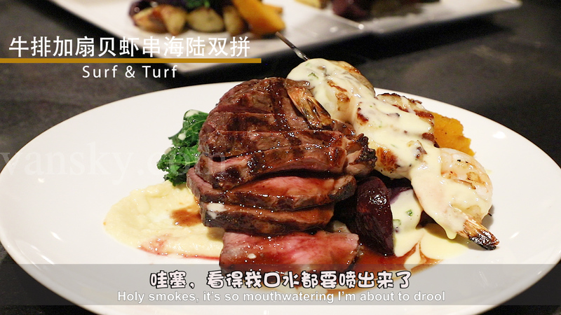 酒吧式餐厅缺少自然光,拍食物的时候可能达不到你要的效果。牛排烤得有点老,牙齿不给力的小伙伴慎点这道菜。