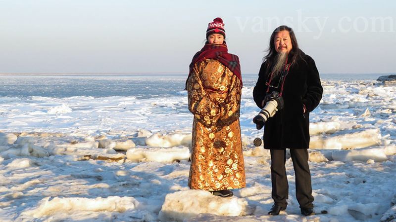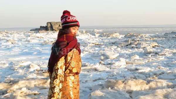 2019年的锦城一月,笔架山下那曾经波涛汹涌的大海此刻宁静了。洁白的海冰上,一袭金黄藏袍的小天使在阳光的映射下,眺望远方、双手祈祷,飘逸圣洁。