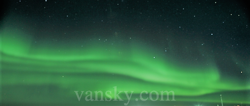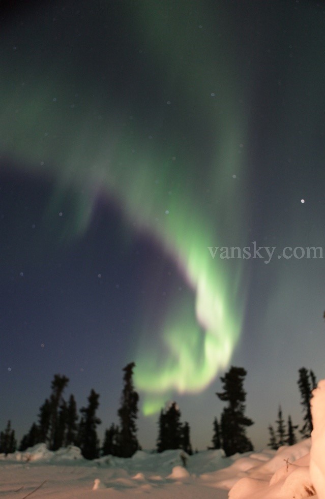 科学的说法总是严谨和精准,但也显得枯燥无味。在商店里出售的极光图片和各种宣传册子中所显示的北极光多姿多彩,让人心驰神往,每年都有不少的人慕名前往育空首府黄刀城和BC省的白马城(该两城靠近南部,交通方便,又处在极光圈内,故为观望极光的首选),希冀能亲眼目睹那美丽的极光。Grace 和Wendy就曾随名副其实的“观光团”到过白马城看极光,但因天气不给力,天阴云厚,未得极光的青睐,最后扫兴而归。