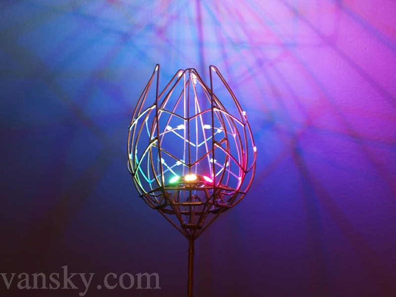 机械郁金香雕塑,只需轻轻触摸即可绽放,可以发出五彩斑斓的光亮。