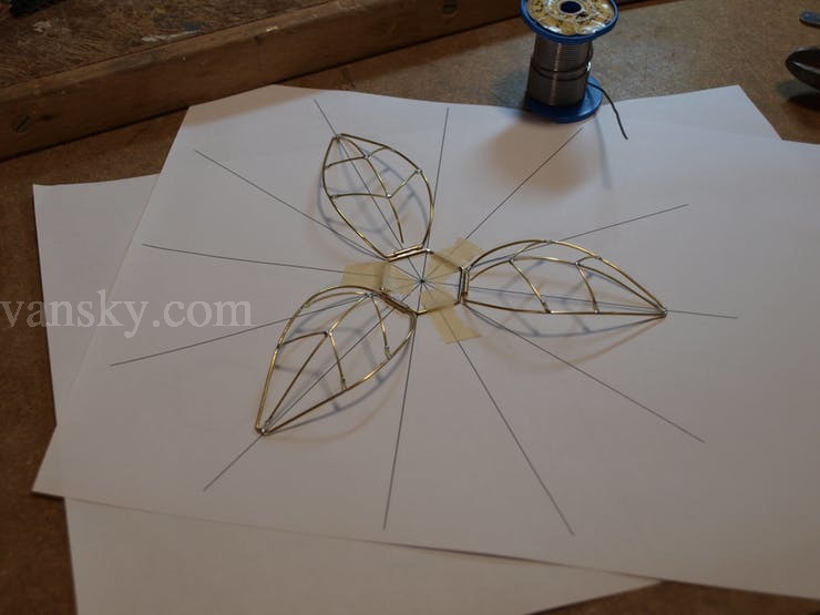 因此将花朵倒置并将V形膨胀物焊接到六角形底座的两个相对顶点。检查形状。如果你把杆放在杆内,它需要在花的中心出来。花点时间在这里完美。这真的是一个至关重要的部分。当你使用它时,在六边形顶部的其余部分和杆顶部之间焊接4根导线。确保不要焊接管道内的孔!