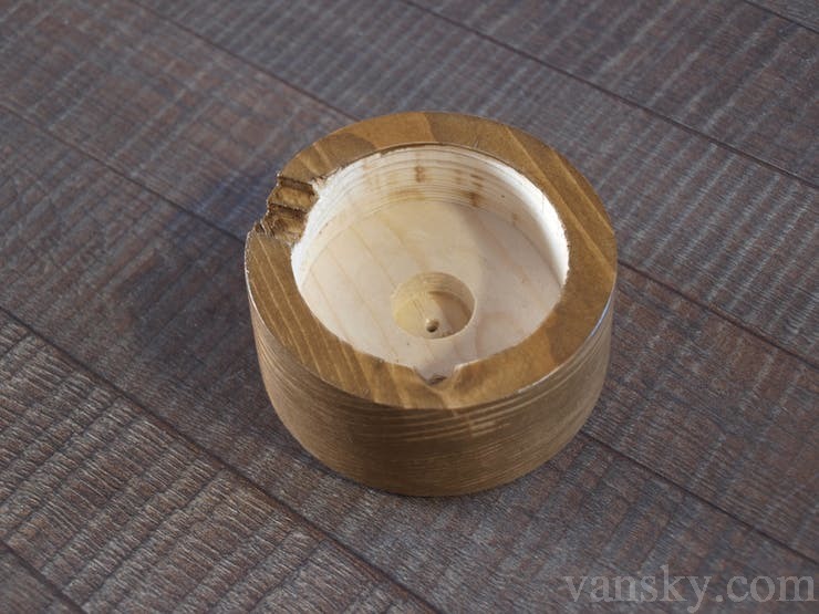 我希望这朵花能够从人造花盆中长出来,这也将隐藏所有电子产品。我用了一块木头把它加工成一个4厘米高,直径9厘米的圆筒。我没有车床,因此我使用圆锯切割原始形状,然后使用压力钻作为临时车床。然后我用手动铣刀雕刻了一个2.5厘米深,直径7厘米的开口,以适应舵机,Arduino Nano和触摸传感器IC。在底部,还有一个小开口,可以精确地安装Arduino Nano USB端口,以便能够从侧面连接USB线。