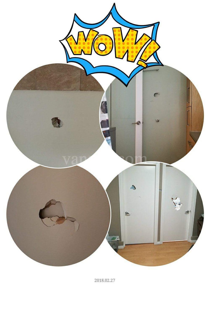 然后我急急忙忙开始清洁,三点钟新客人到,看着这情景,也是晕了,他们问我,这些人疯了吗,这是干什么呀?我千道歉万道歉,只能硬着头皮,希望他们不把这些硕大的窟窿放在心上,毕竟大老远来温哥华,临时改变损失也大,我先给他减免了一天的费用,安顿好他们,继续给Airbnb客服写邮件。