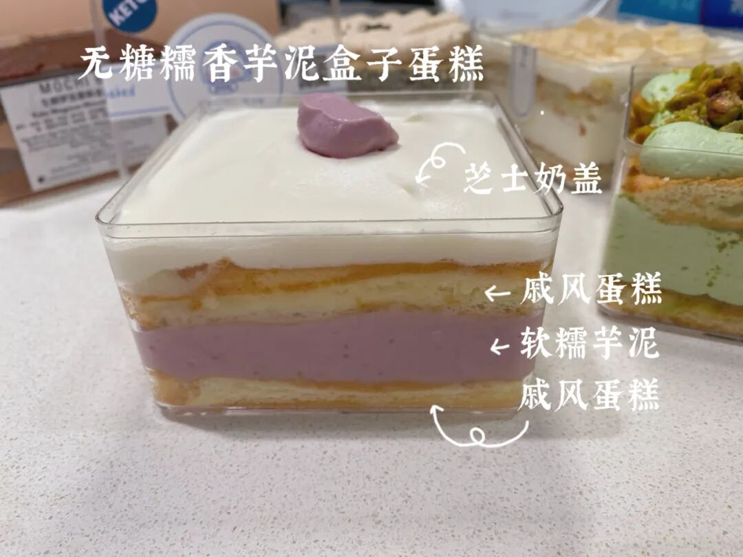 味道:这个糯香芋泥盒子色香味浓,越吃越发惊艳。现打出来的新鲜芋泥口感厚重绵密,整个蛋糕香甜软糯而不腻,口感糯叽叽的Q弹有劲像是在吃麻薯一样。最上层的芝士奶盖是咸口的,丰富了整体的味道。喜欢芋泥的宝子不要错过这款盒子!是小编这五款当中跟梦龙慕斯并列第一喜欢的盒子蛋糕,可以一口气旋20个。真的超级无敌推荐!是会无限回购的盒子蛋糕!