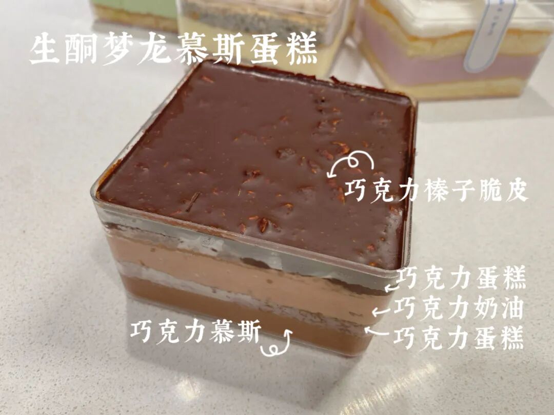 味道:梦龙慕斯盒子是小编心中和香糯芋泥盒子并列第一的! 吃的第一口直接惊艳小编。喜欢吃巧克力的宝子们千万千万不要错过! 完全尝不出是生酮减脂蛋糕,比其他普通巧克力甜品还好吃! 最上层是超厚一层的黑巧克力榛子脆皮,虽然是黑巧但是完全不苦,起到了解腻的作用。而且!整个盒子满满都是巧克力味的,简直让小编这种巧克力星人没法say no。真的推荐推荐推荐!