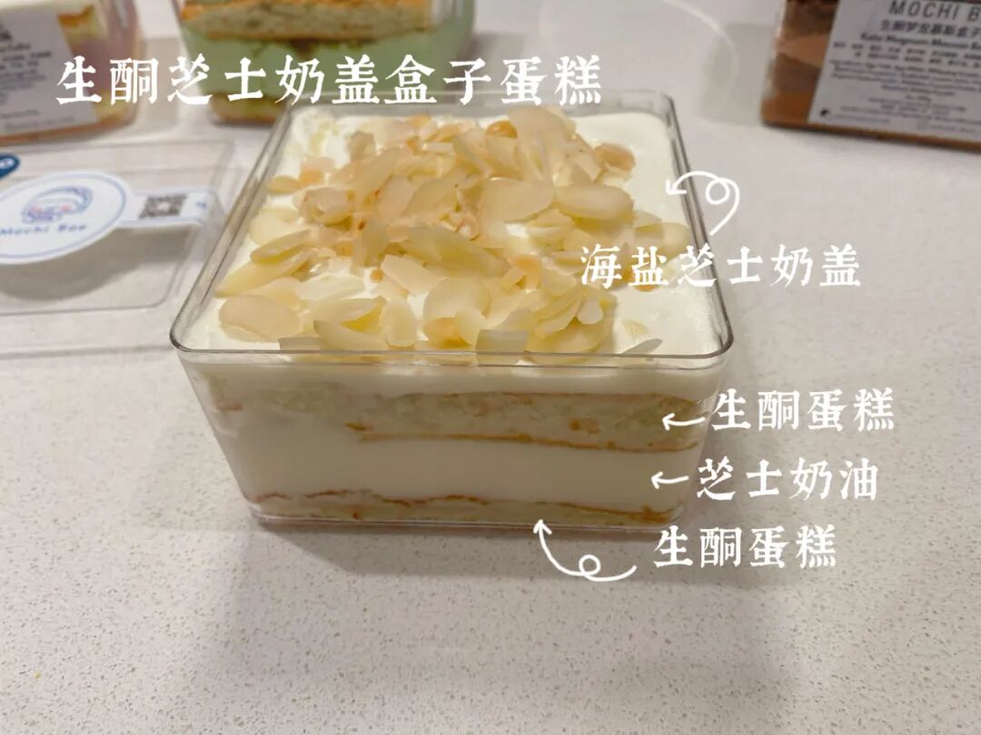 味道:海盐芝士奶盖真的是喜欢咸口奶盖的心头爱。盒子整体偏咸口,虽然是偏咸口的盒子蛋糕,却是真的很香很好吃,上面的杏仁更是可圈可点,越嚼越香。芝士奶油一点都不会腻,小编感觉比普通的奶油要更香更好吃。喜欢芝士的宝子们不要错过!