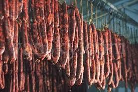 婚宴摆了几大桌,全都围着一个大火坑,火坑的上面挂满了火腿、香肠、猪肉和整鸡等等。