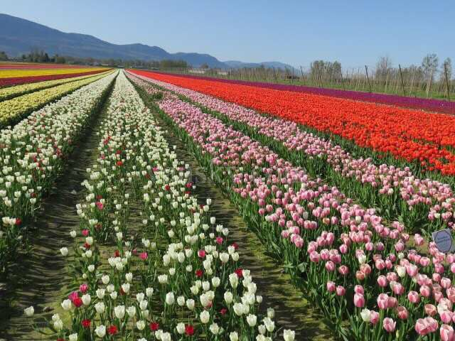 温哥华近郊的郁金香花园就像一个娇羞的蒙着面纱的新娘,不进入园中是看不到她的真容的。虽然平时也常看见花圃中小片的郁金香,但感觉就是一种花;也见过朋友发的大片郁金香图片,可总感觉缺点什么。