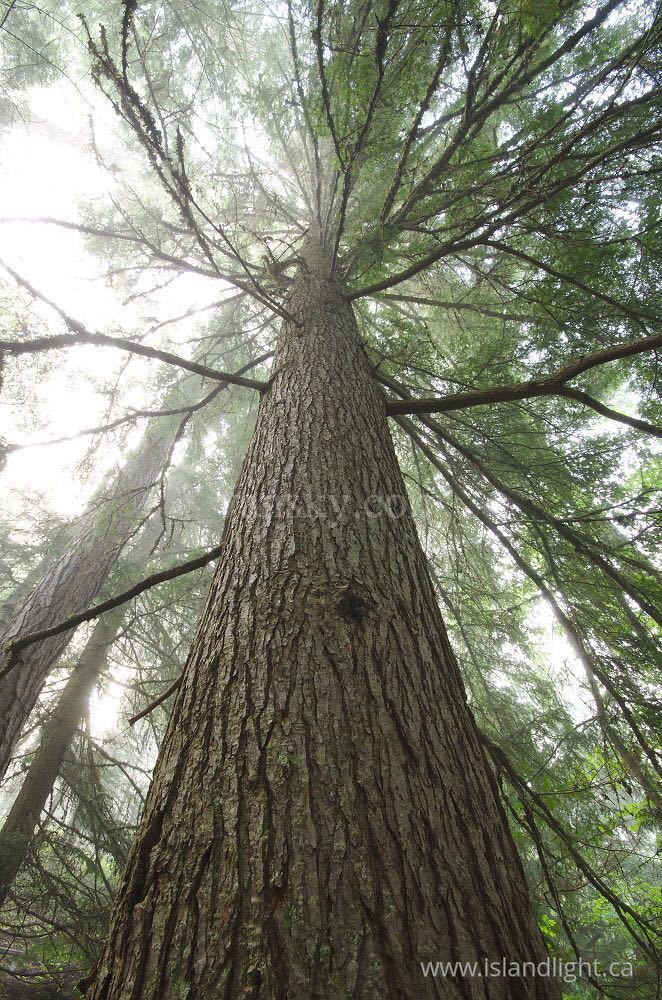 这里的树并不很茂密,但都高大挺拔,直插云天。树下满是断枝残柯,湿润的苔藓。尤其是道格拉斯树,颇为粗大正直,苍老的树皮,沟壑纵横,仿佛在诉说着远古的故事。树皮的样子,倒很象我们加拿大境内的落基山脉,2万年前,融化的、滚滚而下坚硬的冰川将其碰撞切割,如中千刀万剑,伤痕累累,嶙峋陡峭。