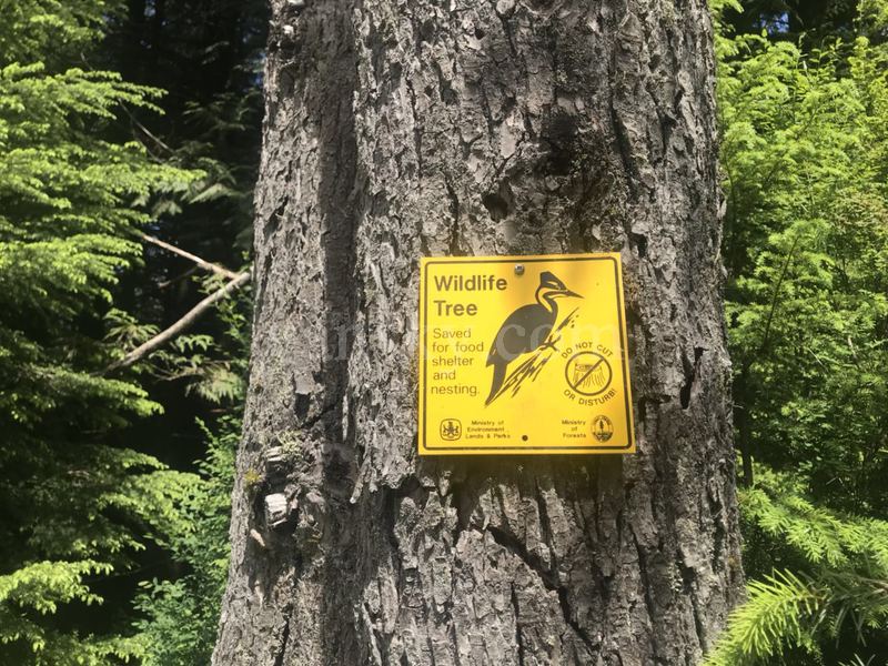 在树间穿行,一路上我们看到了各种形态的树。在我们停下来照相的一个十字路口,有一棵半截的干枯的树,上面钉有不许砍伐的标签,并附有说明,说正因为这棵树枯萎干燥,有的鸟会在上面筑巢、觅食。为了一棵濒临枯死的树,园区员工都如此悉心维护以保持生态,不禁让我们肃然起敬。