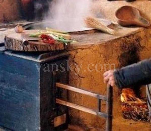 (图片来自网络) 灶台就是这样的,左边那个蓝色的是风箱,用来吹火,一拉风箱火就会旺,家家都是用这种,一模一样的。