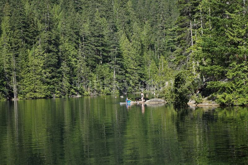 7月15日星期日,骄阳似火,气温很高。Patricia, 云城听雨和我去了两个湖:布罗姆湖(Brohm Lake )和猫湖(Cat Lake)。这两个湖都是在森林环绕中的一汪碧水,消暑的好去处。她们在斯夸米什(Squamish) 的北面15公里处,分别在海天公路的两侧,离威士勒 (Whistler) 较近。当天的温度在阳光下应有摄氏35度。