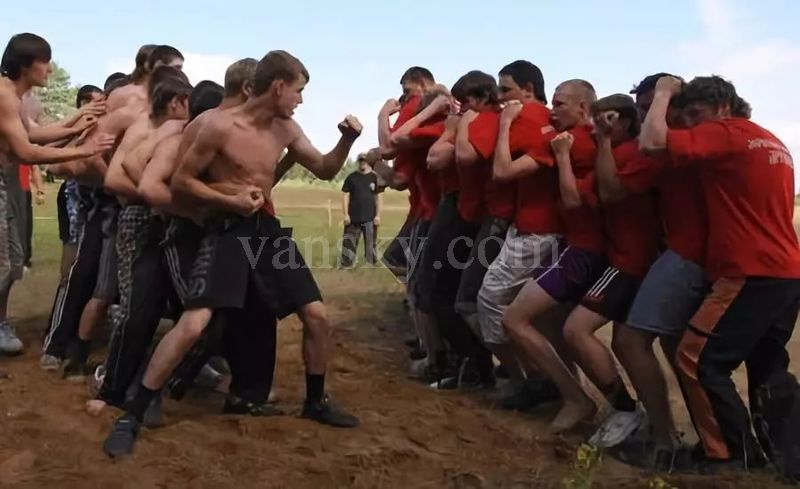 这种被称为“俄罗斯拳斗”的群殴格斗形式自古以来就存在。两排体形魁梧又不怎么穿衣服的男子之间的对峙,体现了俄罗斯男性的基本功:无畏、勇敢和同志之情。
