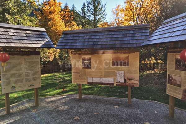今日的耶鲁镇,早已辉煌不再。只是高山环抱下的一个平凡小镇。村口有几棵高大的苹果树,果实累累。镇里只有一条主要街道,房屋古朴雅致、花草丰茂。路旁的历史建筑仿佛向人叙述着那并不十分久远的过去。西海岸的贸易、BC省加入联邦的过程、太平洋铁路都可以在这里溯本求源。在我们去的前一星期,在耶鲁镇树起了一组三个的宣传板,记述中国劳工的贡献,及曾对耶鲁镇颇有影响的华人李氏家族的历史。