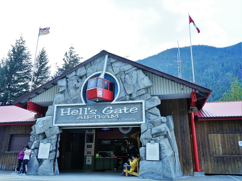 午饭后,转眼就到了鬼门关缆车站。鬼门关听起来很吓人。实际上,它处在卡斯卡德山脉(Cascade )和太平洋西岸山脉(Coast Pacific)之间的大峡谷中,是菲莎河最窄和最深的地方,两岸山势陡峭、绝壁屡现。此处河床最宽只有34米。菲莎河是加拿大第10大河流,从洛基山和黑岩山发源,浩浩荡荡,总长1375公里,经温哥华的乔治亚海峡西入太平洋。水位在春天融雪时最高,可达219英尺深,比最低时高出100英尺。水位盈缩,不同的时期成就不同的景观。菲莎河到了这里,格外汹涌,裹泥沙,带狂潮,一往无前,猛烈地撞击阻拦它前进的岩石、崖壁,形成巨大的旋涡、湍流,小船到这后会象陀螺一样直打转转。丰水期时,菲莎河以每分钟两亿加仑的流量流过。此流量是尼亚加拉瀑布的两倍,而河床最宽的地方,还不到尼亚加拉瀑布宽度(792米)的二十四分之一。众所周知,尼亚加拉瀑布,急流飞瀑、声如雷霆、气势磅礴。在丰水期,鬼门关的水道瞬间流量如此之大,其湍急、迅猛可想而知。