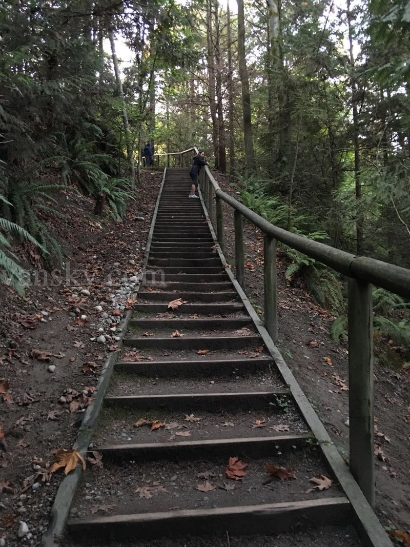 奔溪环路(Byrne Creek Ravine Loop Trail)在大温哥华的南本拿比,全长4公里。南本拿比地势高,远看就是一个山岗。奔溪环路是一个上宽下窄的环,高处近百米,低处仅十米。奔溪从中间流过。东南面高低之间是缓缓地下降,西北面则是陡然而降,有一近百米的土木的阶梯。由于奔溪在深壑中,很多人、包括住在附近的人,都不知道奔溪和奔溪环路的存在。反之,知道和去过的人,对她都赞不绝口。因为喜欢,我常去。昨天傍晚,我又去了。