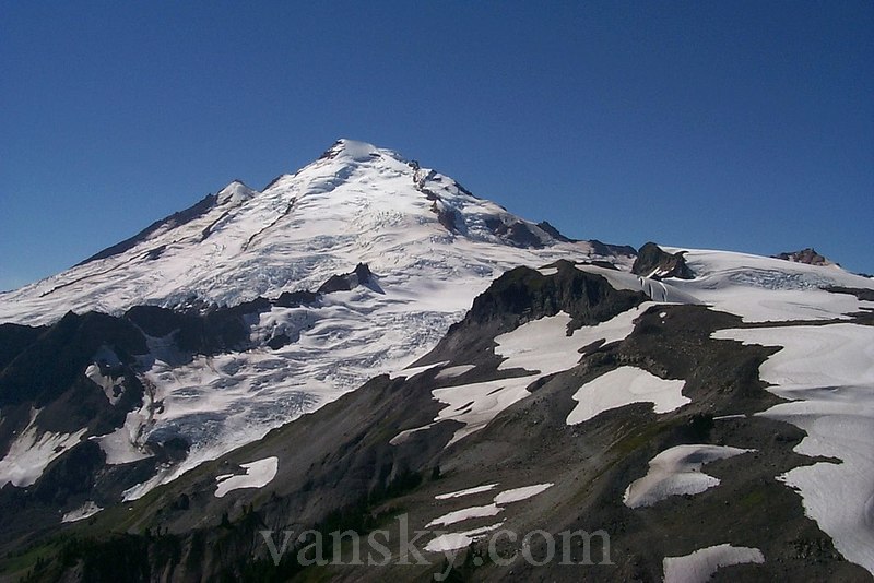 晴天在大温哥华地区远远地南望能看到白雪皑皑贝壳山(Mt. Baker),山的上部呈等腰梯形,巍巍峨峨的,甚为壮观。